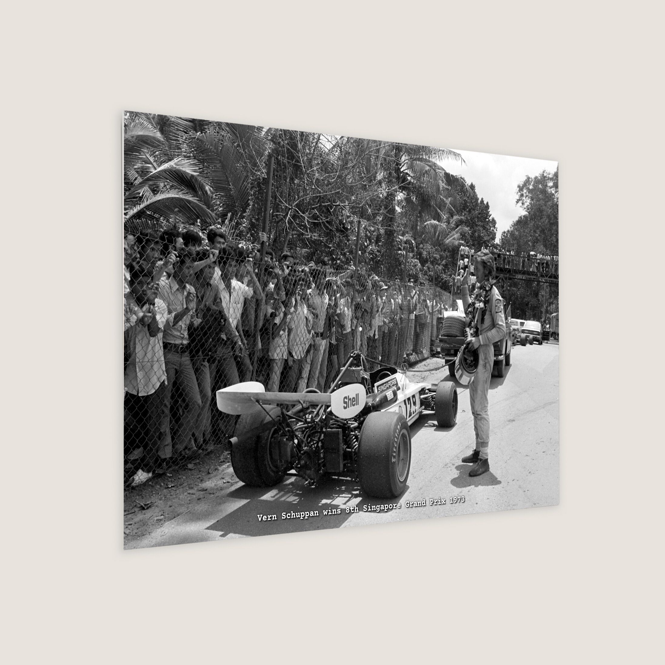 Australia's Formula One driver, Vern Schuppan drove a cool and well-judged race to win the Eighth Singapore Grand Prix at the Upper Thomson Road Circuit. Schuppan, 30, covered the punishing 150-mile race in 1hr 38min 58.3sec. For his masterly performance, Schuppan won $10,000, a handsome trophy and a standing ovation from the record turnout of spectators.