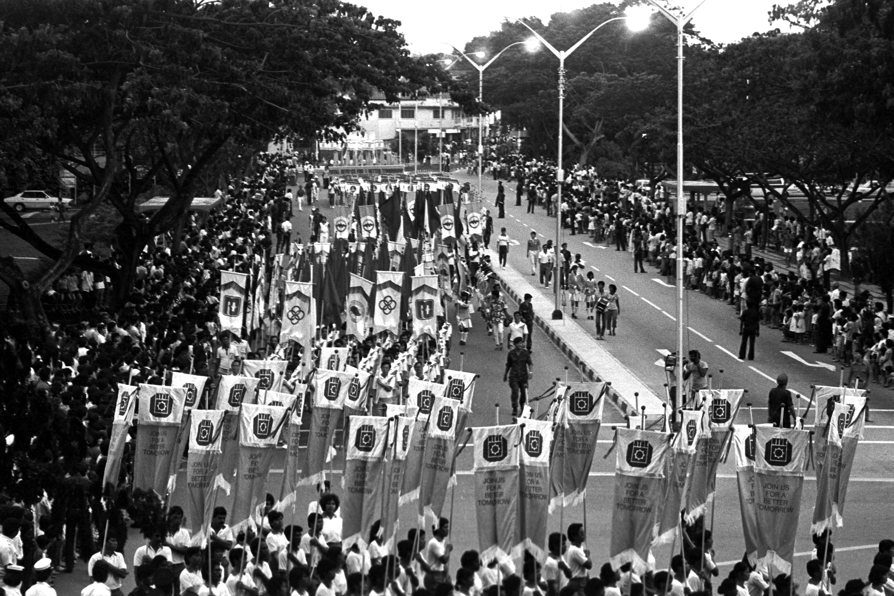Hundreds of people with snacks and cameras lined the two routes taken by the marching contingents of the August 9 celebrations